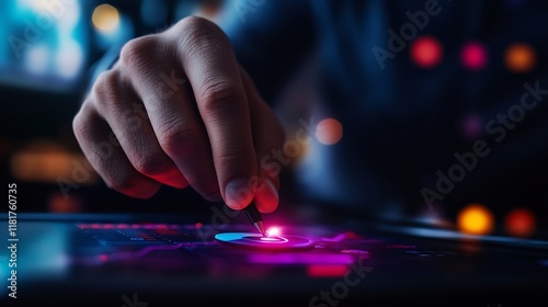 Digital Innovation: A Hand Interacting with Futuristic Interface