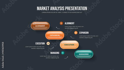 Digital Insight Four Step Infographic Slideshow Layout. Company Launch 4 Option Diagram Frame Template. Project Profile Presentation Design Vector Illustration.