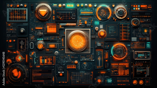 Digital interface with glowing orange and blue elements, showcasing futuristic technology and data visualization