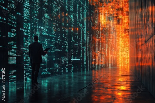 Digital landscape exploring technological innovation and data visualization in an immersive environment during nighttime