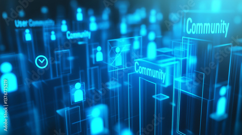Digital landscape revealing user icons glowing, symbolizing interconnected community and growing online social networks