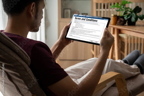 Digital legal contract provide terms and conditions document on computer screen ready for online digital signature for deal agreement of future business snugly