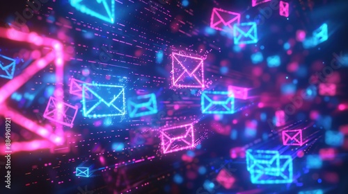 Digital Mailboxes: Neon Email Icons Flowing Through a Cyberspace