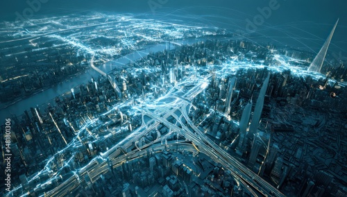 Digital map of a city with real-time movement tracking and updated traffic data.