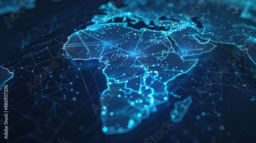Digital map of Africa, concept of global network and connectivity, high speed data transfer and cyber technology