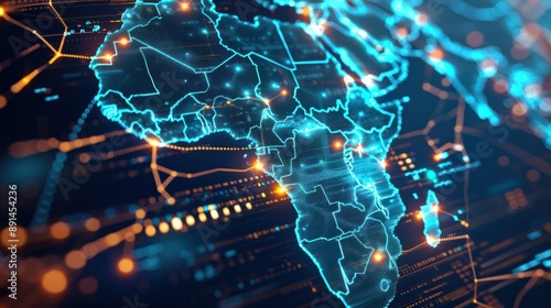 Digital map of Africa, concept of global network and connectivity, high speed data transfer and cyber technology