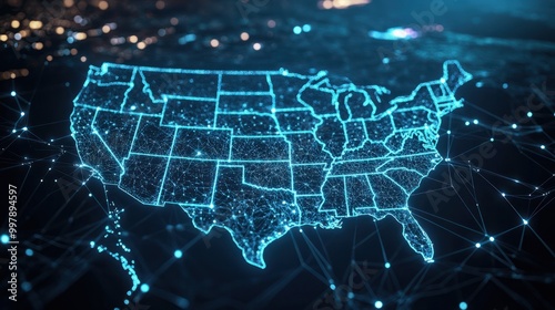 Digital map of USA, concept of American global network and connectivity, data transfer and cyber technology, electronic vote, information exchange and telecommunication