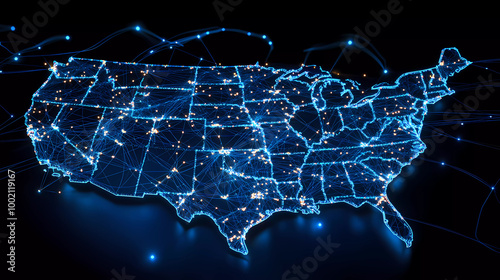 Digital map of USA, concept of North America global network and connectivity, data transfer and cyber technology, information exchange and telecommunication Generative AI