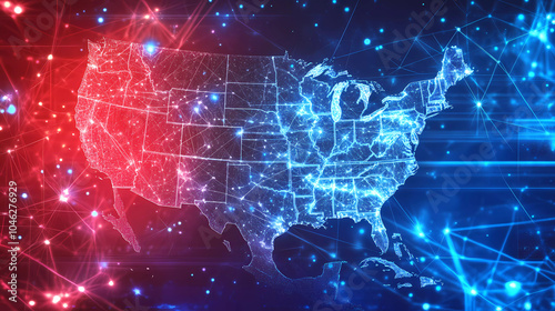 Digital map of USA, concept of North America global network and connectivity, data transfer and cyber technology, information exchange and telecommunication Generative AI