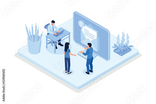 Digital marketing, Characters integrating with sending advertising emails, isometric vector modern illustration