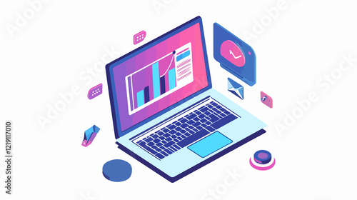 Digital Marketing Laptop Computer Report Settings Vector Illustration
