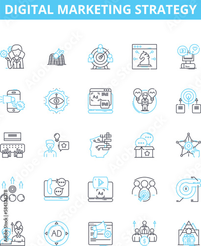 Digital marketing strategy vector line icons set. Digital, Marketing, Strategy, SEO, SEM, PPC, Content illustration outline concept symbols and signs