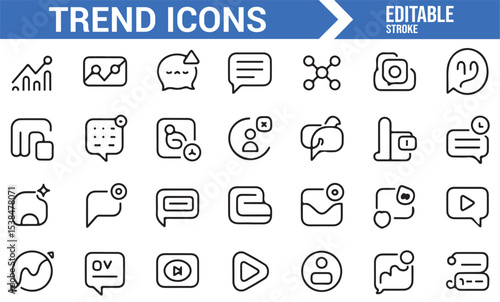 Digital media and trend icons featuring graphs, feedback, and play buttons