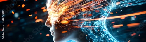 Digital Mind - Abstract Illustration of a Person with Technology and Data Flowing.