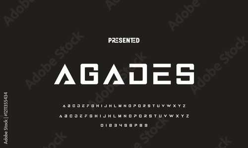 Digital modern alphabet font. Creative abstract urban, futuristic, fashion, sport, minimal technology typography. Simple vector illustration with number