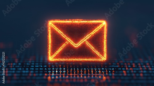 Digital Neon Envelope Icon with Glowing Effects on Dark Background for Communication and Technology Themes