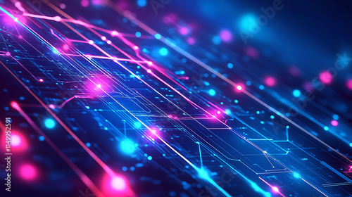 Digital Network Abstract: A mesmerizing abstract depiction of a glowing digital network, with vibrant pink and blue lines connecting nodes.