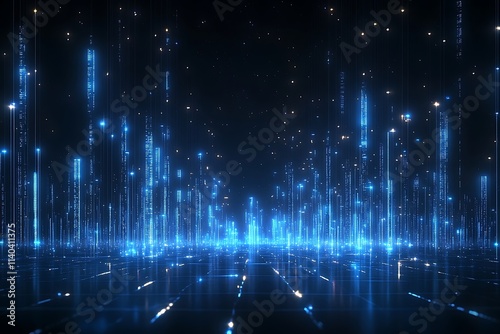 Digital Network Cityscape Futuristic Lines and Particles