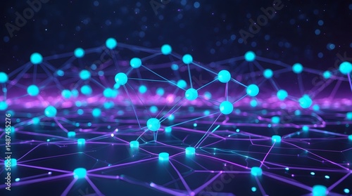 Digital Network Connection: A captivating visual representation of the digital world, with a network of interconnected nodes illuminating in vibrant blue and purple.