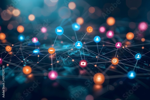 Digital Network Connections with Colorful Icons Representing Social Media and Communication