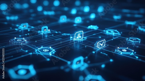 Digital network, data flowing, circuit board, glowing icons, tech background, website