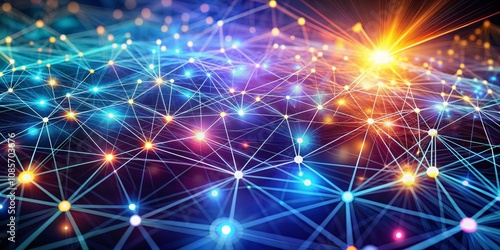 Digital Network with Bright Glowing Nodes, abstract, digital, connection, network