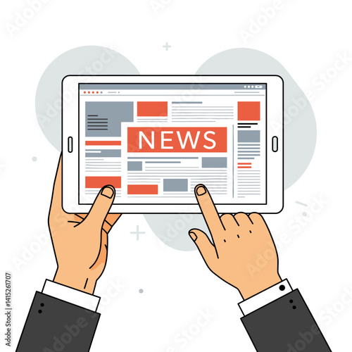 Digital News: A modern illustration showcasing a person's hands interacting with a tablet displaying a news article, conveying the modern era of information consumption and digital media.