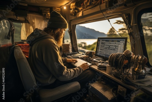 Digital Nomad Setting Up Their Workspace, Generative AI