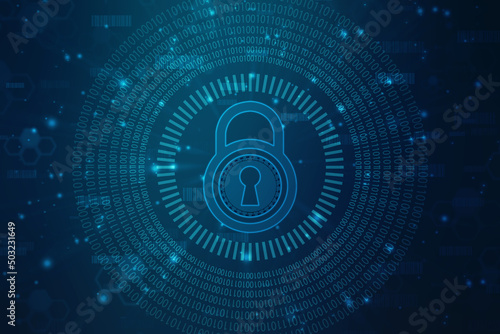 Digital Padlock on abstract technology background, Technology security concept. Modern safety digital background. Protection system, Cyber Security and safety information, personal data concept