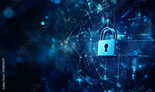 Digital Padlock Symbolizing Cybersecurity Protection in a Futuristic Network Environment With Interconnected Data Points and Glowing Elements