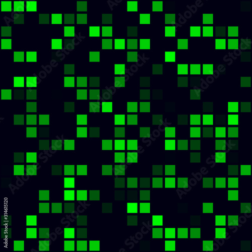 Digital pattern. Sparse pattern of squares. Green colored seamless background. Captivating vector illustration.