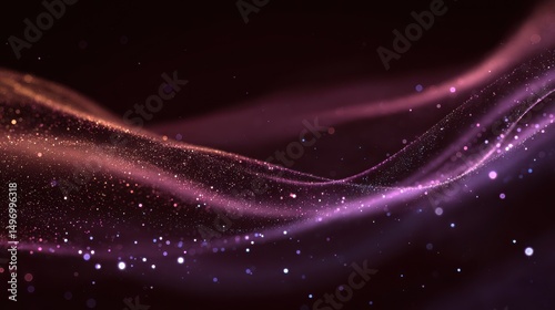 Digital purple particles wave and light abstract background with shining dots stars.