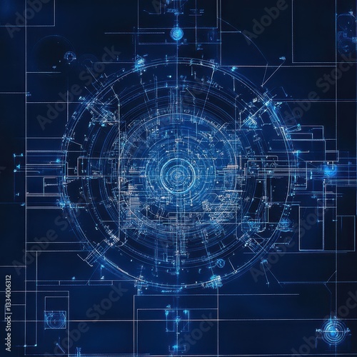 Digital quatrefoil blueprints with glowing techinspired geometric details
