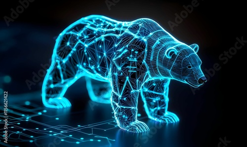 Digital Rendering of a Bear in Neon Blue Wireframe Style