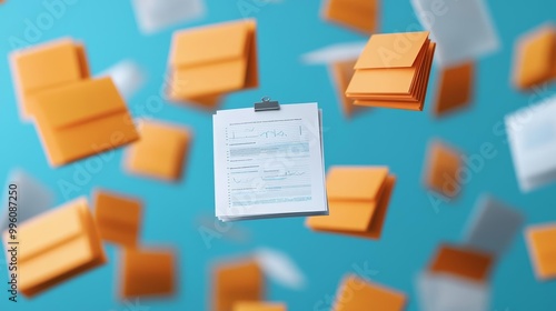 Digital reports and project papers floating in the air, showcasing automated project documentation and real-time updates