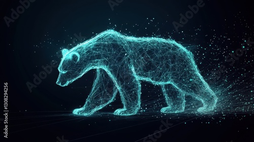 Digital Representation of a Bear in a Futuristic Style with Abstract Lines and Points Creating a Neon Glow Effect Against a Dark Background