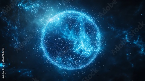 Digital representation of Earth as a glowing blue network sphere against a dark background