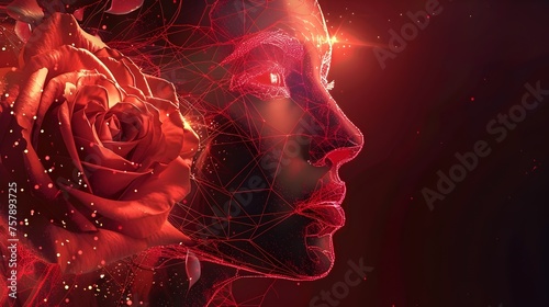 Digital Rose and Profile Outline, Conceptual Art with...
