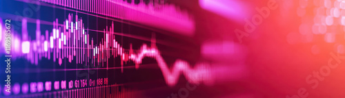 Digital screen displaying vibrant sound waves and data trends