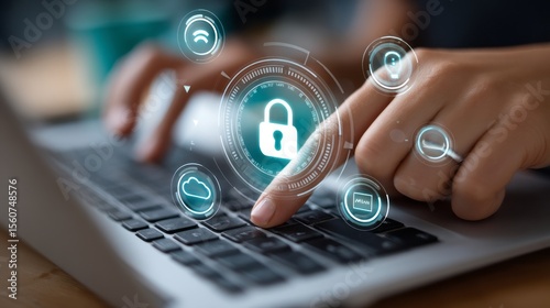 Digital Security Online Protection Data Privacy Secure Network Technology Internet Safety Modern Laptop Keyboard Hands Typing Confidential Information Secure Data Encryption Technology Web Idea Risk