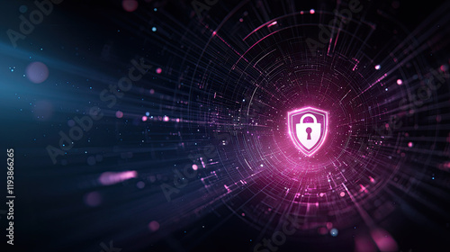 Digital security shield with glowing lines and particles