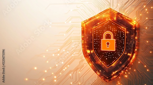 Digital Shield and Padlock Protecting Data and Network Security Concept