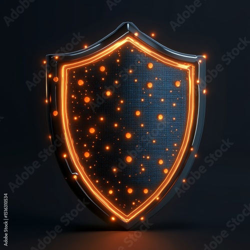 Digital shield icon featuring radiant orange nodes for enhanced cybersecurity representation