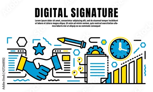 Digital signature banner. Outline illustration of digital signature vector banner for web design
