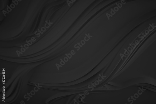 Digital silk cloth of wavy abstract backgrounds. Black and white 3D waves. Natural organic shapes.