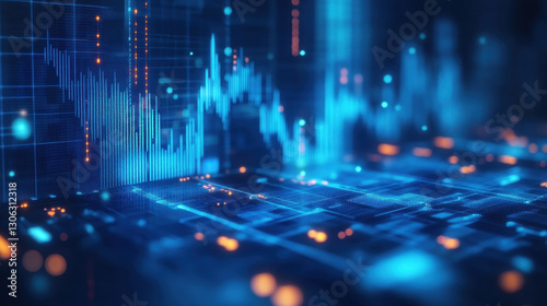 Digital stock market graph with financial data and business growth concept on a blue background