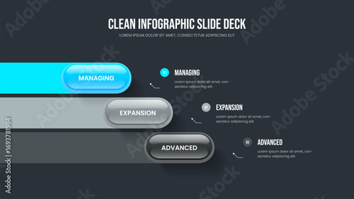 Digital Strategy 3 Option Infographic Slideshow Design. Consulting Briefing Three Step Diagram Presentation Layout. Marketing Planning Slide Template Vector Illustration.