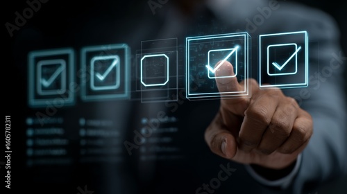 Digital task completion virtual office interactive interface professional environment close-up view productivity concept