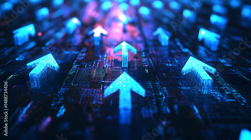 Digital Technology Concept with Glowing Blue Arrows and Data Flow