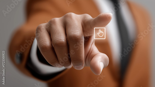 Digital Thumb Up: A close-up shot of a hand with a digital interface overlays, with a clear message of approval, highlighting a modern concept.